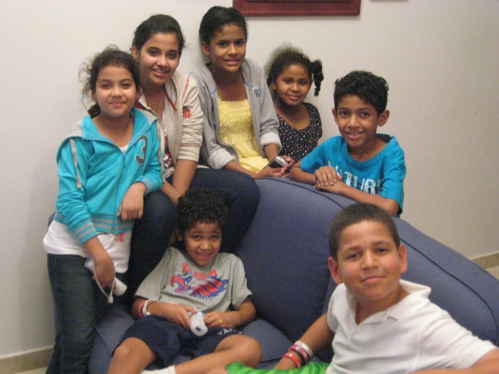 I opened the front gate to my home and I saw two pairs of girls flip-flops by the front door. I thought to myself, "The boys have friends over." I entered the house, I put the groceries down on the table and I heard LMFAO's party anthem "Party Rockers" thumpin' from the tv upstairs. I went halfway up the stairs and I saw Miles, Evan, and their friends Areege and Areeba all dancing and playing the Nintendo Wii game Just Dance 3. On my way back down the stairs, the doorbell rang, I went to the gate, opened it up and it was one of the girls from across the street, Jahira and she asked, "Is Miles home? I said, "Yes," I pointed upstairs and she quickly ascended the stairs to join the dance party. I closed the gate, I barely made it back to the front door and the doorbell rang again and I started laughing. I opened the gate and it was Jahira's little sister Reem and their cousin Laith. All I did was point upstairs and Reem and Laith quickly scampered up the steps following Jahira's footsteps and the music. I finally made it upstairs and the kids were having a full out dance party and a good time! I looked at the kids, there were 7 of them, ranging in age from 6-14, three different nationalities (Omani, Indian, and American) and four different languages represented, but on this evening English and having fun appeared to be the lingua franca.